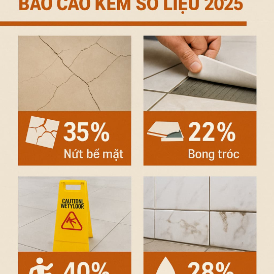 • 35% sự cố liên quan đến nứt bề mặt gạch trong vòng 6–18 tháng sau thi công.