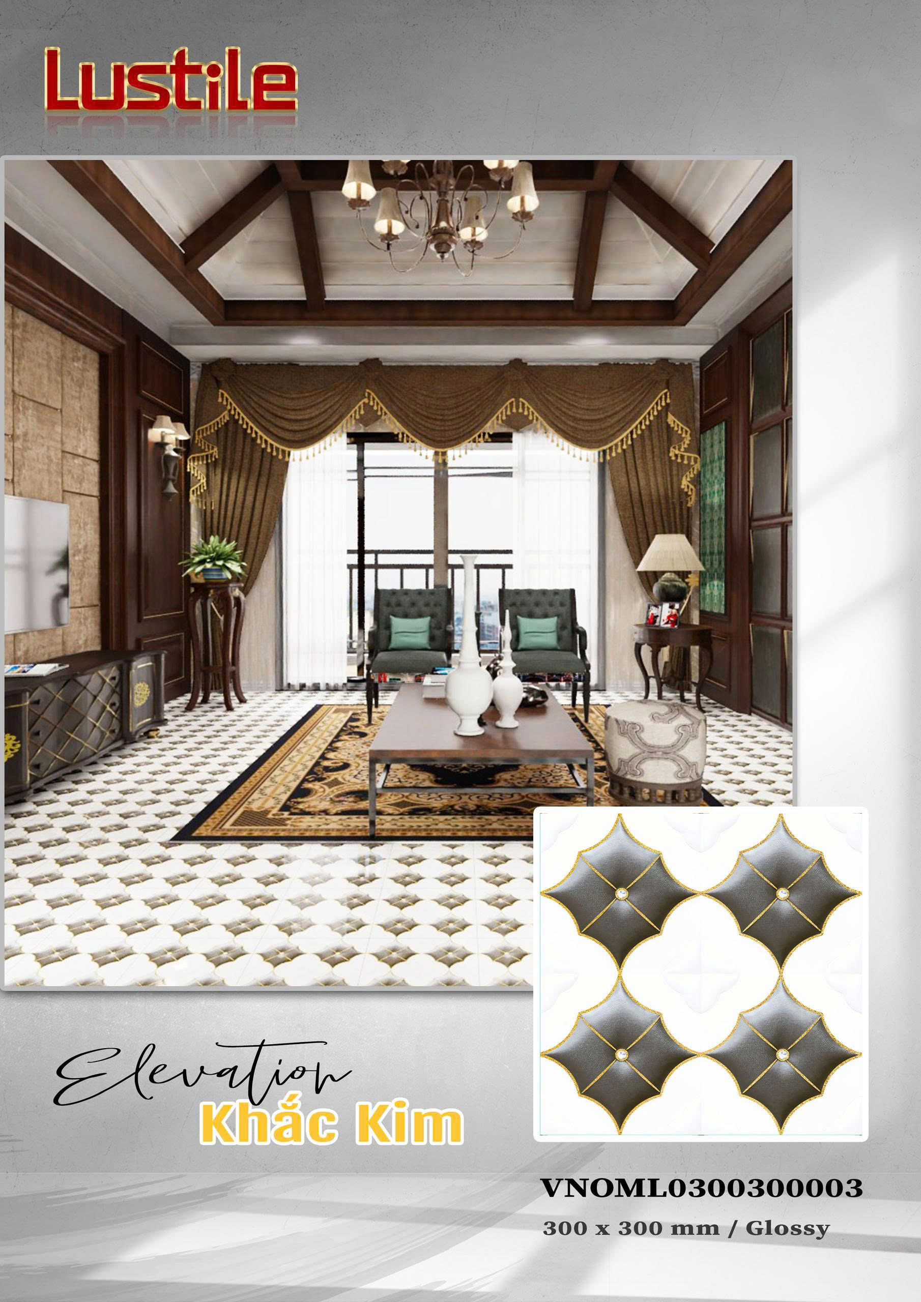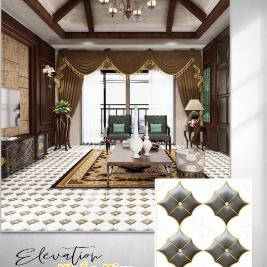 Phòng khách rộng, trần cao → có thể dùng men bóng